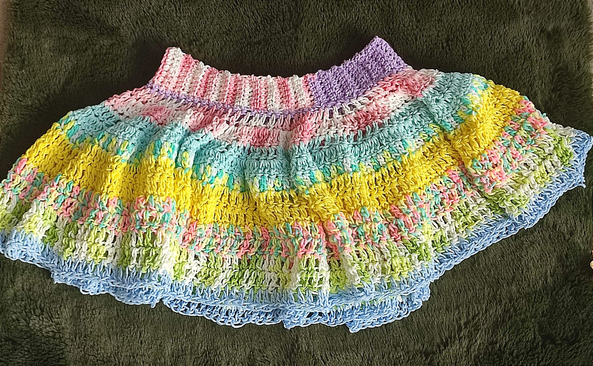 Even though this is made with a soft and sturdy cotton yarn the waistband can still stretch due to wearing and the weight of the skirt overtime.